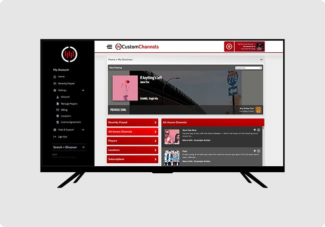 Utilize your existing smart TVs and displays to stream Custom Channels’ music, providing a cost-effective solution for businesses with minimal hardware requirements.