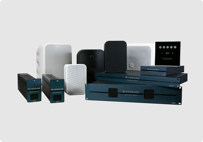 Bluesound Professional offers a range of BluOS-enabled devices, including streamers, amplifiers, and speakers, designed specifically for commercial environments.